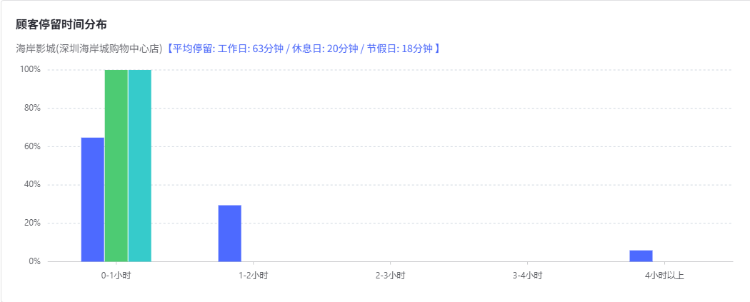 该商场顾客的停留时间分布,大部分客人只停留1个小时以内