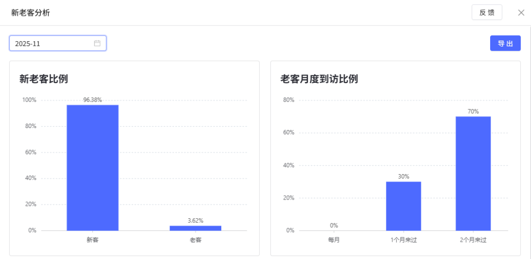 深圳某知名商场的复购率情况&到访频次,新客占90%,老客复购非常低