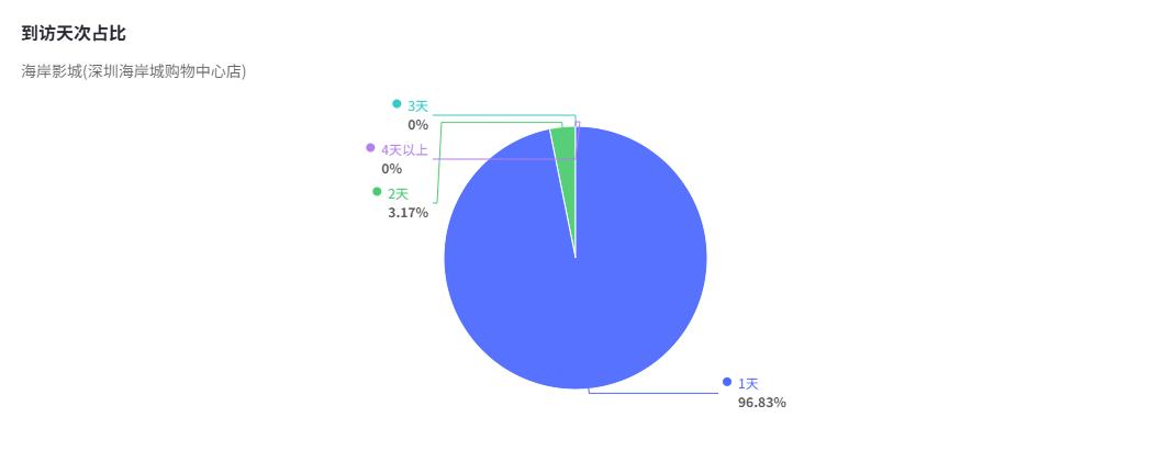 该商场顾客的到访天次分布,可以看出96%的人只来一天